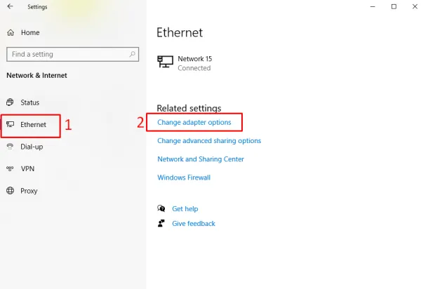 تغییر DNSدر ویندوز: ۱. ابتدا وارد تنظیمات کارت شبکه خود شوید: – “Control Panel” را باز کنید. – به مسیر ” (شماره۲) Ethernet (شماره۱)> Change adapter settings” مراجعه کنید. تصویر(۱)  – طبق تصویر زیر لیست کارت‌های شبکه (Network Interfaces) نمایش داده می‌شود. تصویر(۲) ۲. انتخاب کارت شبکه مورد نظر: – روی کارت شبکه‌ای که قصد دارید DNS …